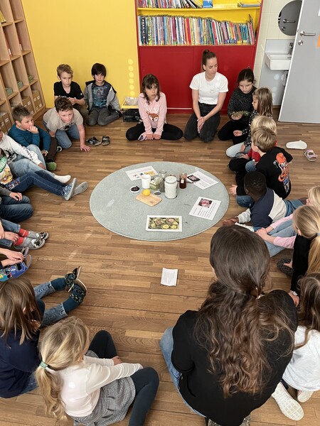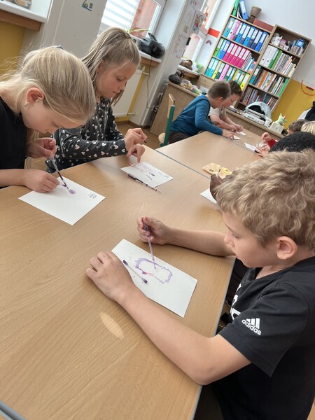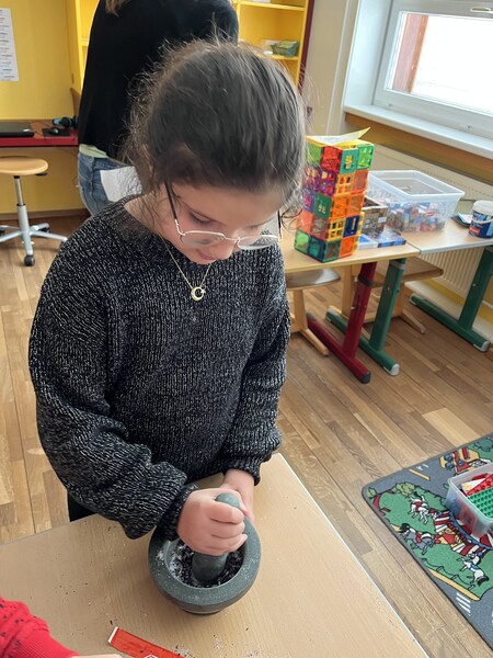 Am Donnerstag, den 13.11.2025, bekamen wir Besuch von zwei Damen von der Naturschule Pinzgau. Wir lernten etwas über die Malve. Am tollsten waren die Zaubertricks, die wir mit Malvenblüten und Wasser machten. Wir durften auch mit Malventinte zeichnen und unser eigenes Salz mit Malvenblüten und etwas Lavendel mörsern. Es waren interessante und tolle Stunden mit Steffi und Lisa.