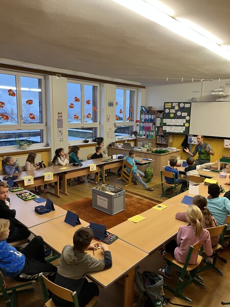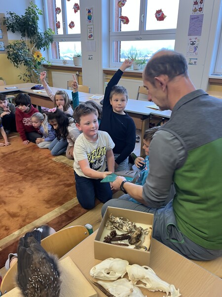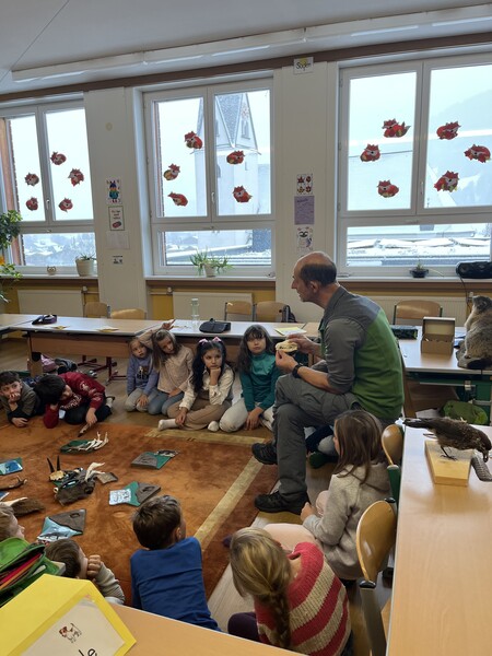 Am Donnerstag, den 20.11.2025, besuchte uns Herbert Hofer vom Nationalpark Hohe Tauern. Wir lernten viel Interessante über Tierspuren. Wir schauten uns die verschiedenen Möglichkeiten, welche Spuren Tiere im Wald bzw. in der Natur hinterlassen können. Natürlich durfte jeder von uns erzählen, welche Tier wir schon gesehen haben. Am schwierigsten war das Zuordnen der Tiere zu deren Losung. Es war ein sehr interessanter Vormittag.
